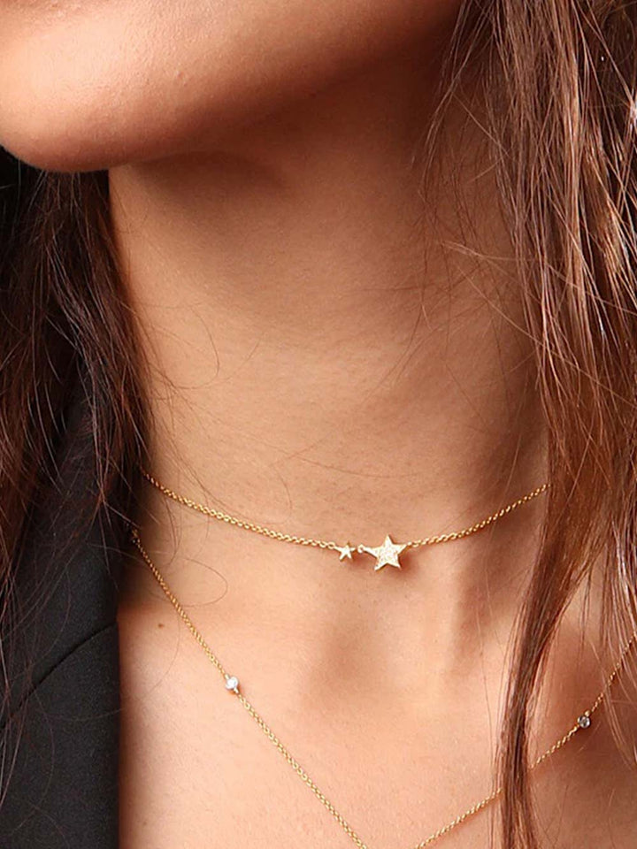 2 Star Diamond Necklace in 14kt Gold (0.06cts)