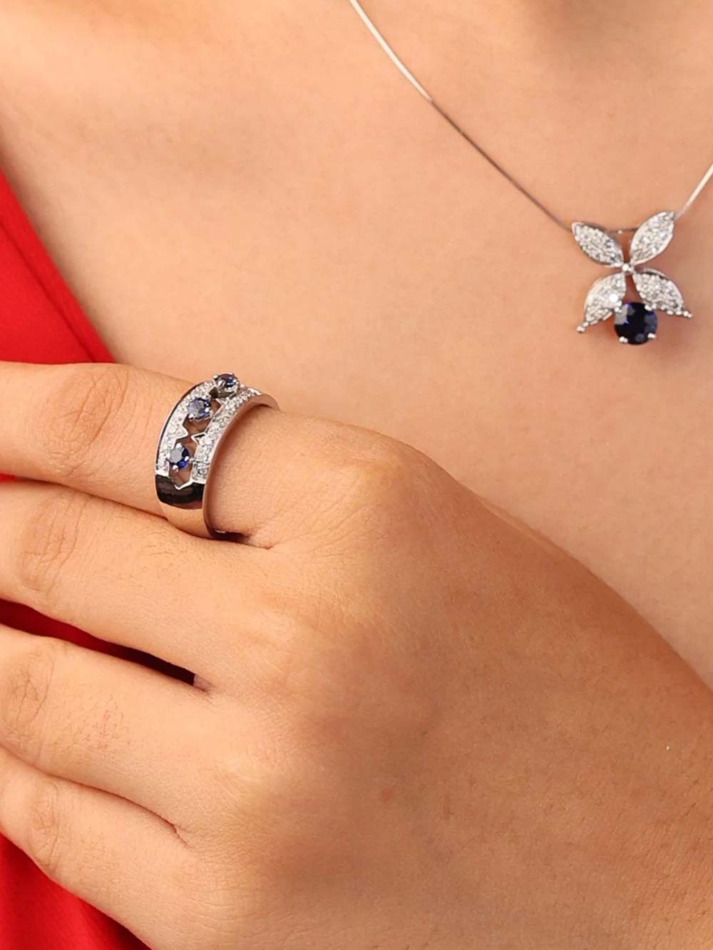 Elegant and versatile, this ring makes a meaningful engagement piece, an anniversary gift, or a treasured heirloom to mark life’s milestones. The 3 Stone Blue Sapphire & Diamond Ring is not only a statement of beauty—it is a story of enduring love and connection, told through the language of timeless gemstones.