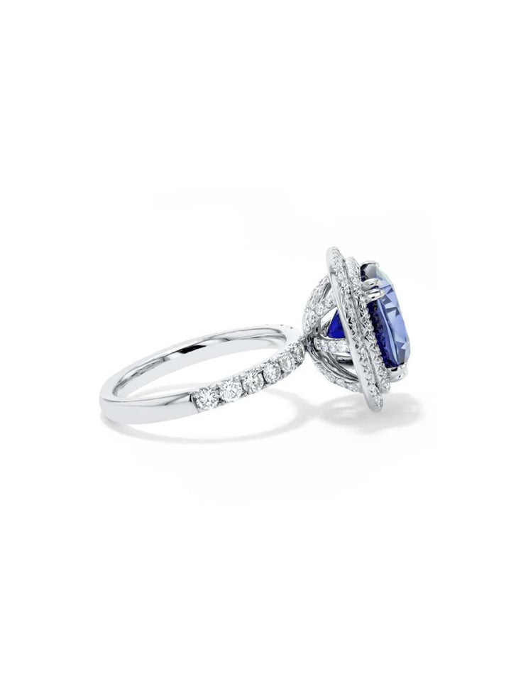 The Cushion Cut Blue Sapphire and Diamond Halo Ring is a luxurious and timeless piece that combines the deep beauty of blue sapphire with the brilliance of diamonds. At the heart of this stunning design is a cushion-cut blue sapphire, selected for its rich, velvety blue color and exceptional clarity. The sapphire’s bold and striking hue is the perfect symbol of wisdom and loyalty.