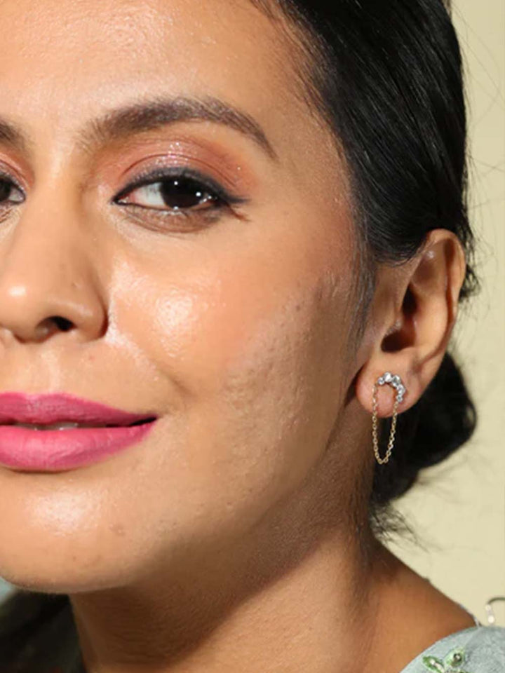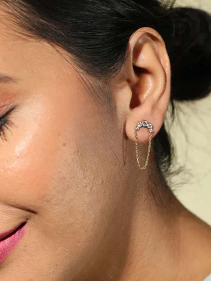 Diamond Earrings with Hanging Chain 14kt Gold (0.42cts)