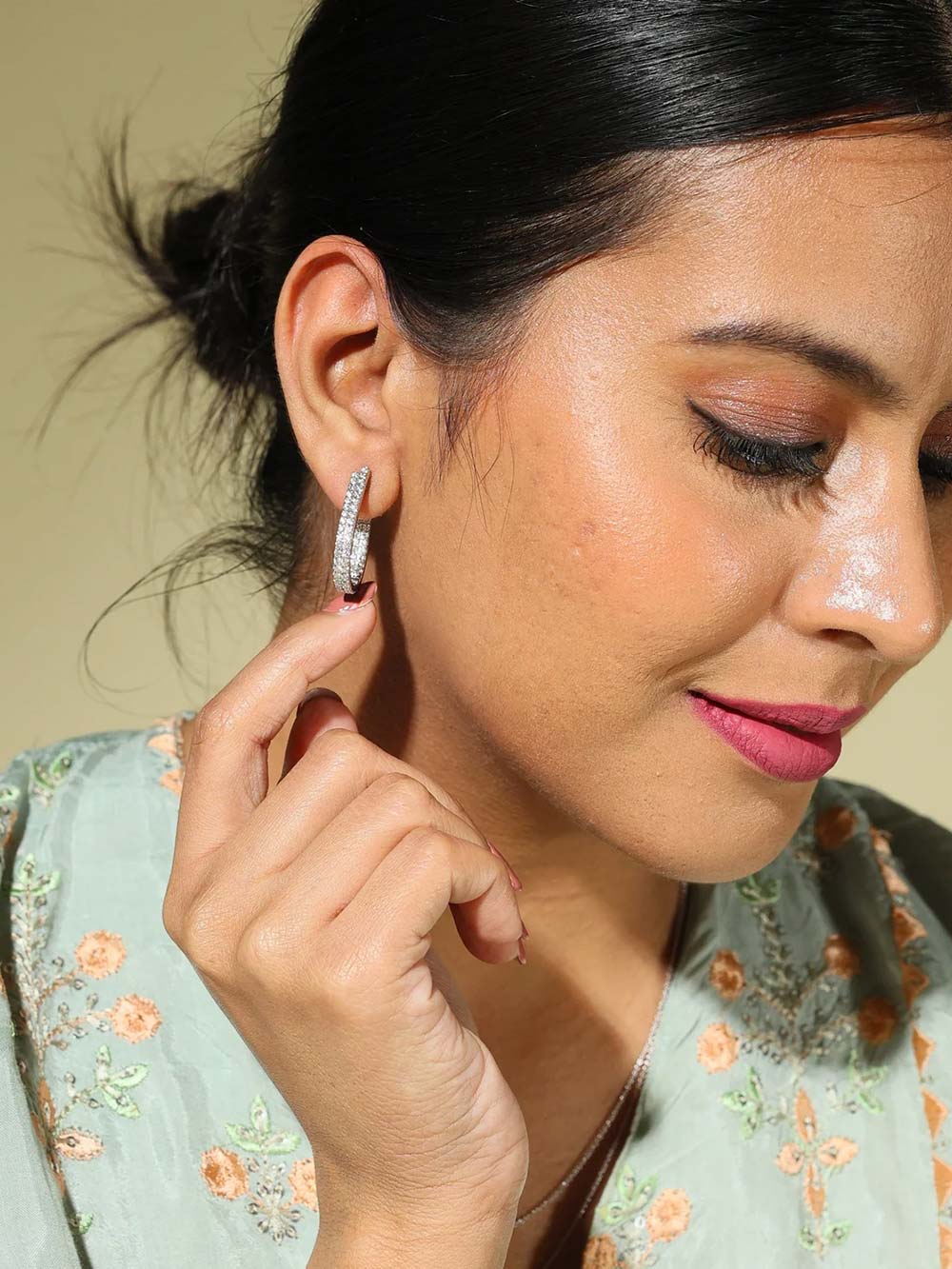 Whether styled solo for a clean, minimal look or layered with studs and cuffs for a curated ear, the Diamond Hoop Earrings transition effortlessly from day to night. A perfect gift or personal keepsake, they speak of enduring beauty, confidence, and understated luxury.