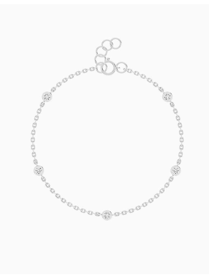 A modern essential, the Diamond Station Bracelet offers minimalist elegance with timeless appeal. Set in 14k gold, this piece features round brilliant-cut diamonds stationed evenly along a slender chain. Each diamond is bezel-set to ensure both security and sparkle, allowing light to reflect from every facet.