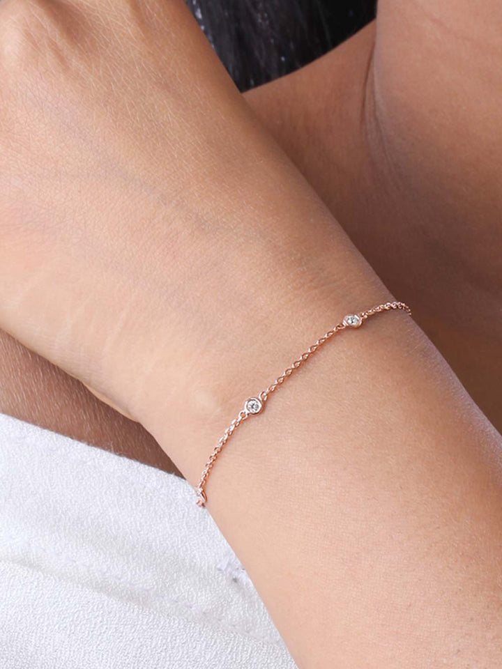 The diamonds—graded G-H in color and VS in clarity—glow with understated luxury. The bracelet’s airy design makes it ideal for everyday layering or solo wear, lending subtle sophistication to any look.