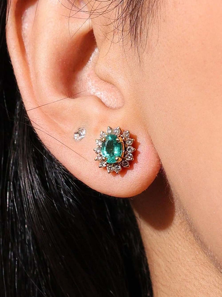 The center emeralds are ethically sourced from Colombia, a region globally revered for producing emeralds with intense saturation, excellent transparency, and a unique green glow that appears to pulse with life. Each stone is hand-selected for its vivid color and natural character—offering not just brilliance, but individuality. Emeralds have long symbolized growth, wisdom, and renewal, making these studs not just luxurious, but deeply personal.