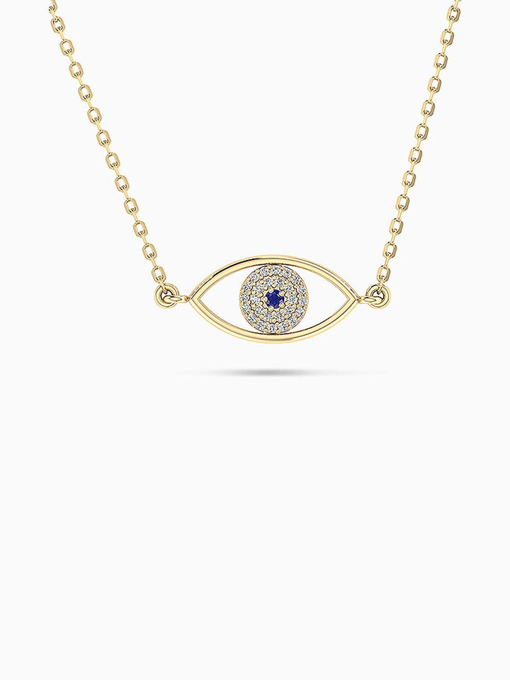 Evil Eye Diamond & Blue Sapphire Necklace in 14kt Gold (0.20cts)