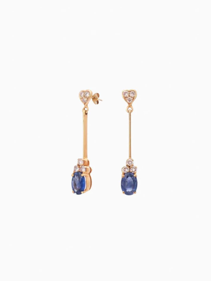 Ceylon Blue Sapphire Heart Charm Drop Earring in 18kt Gold (1.15 Bs)