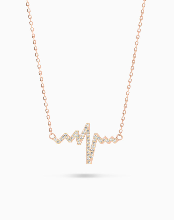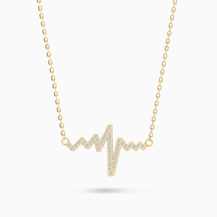 Heartbeat Diamond Necklace set in 14k gold, with an adjustable chain to add that funk to your look.