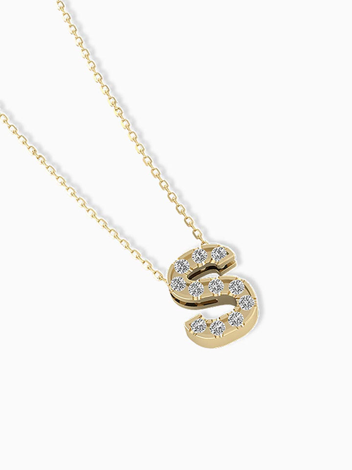 Celebrate your unique identity with this elegant Initial Spark Diamond Pendant, crafted in radiant 14K gold. This personalized piece beautifully showcases a single initial, intricately designed with delicate curves and adorned with ethically sourced diamonds that shimmer with exceptional clarity and brilliance.