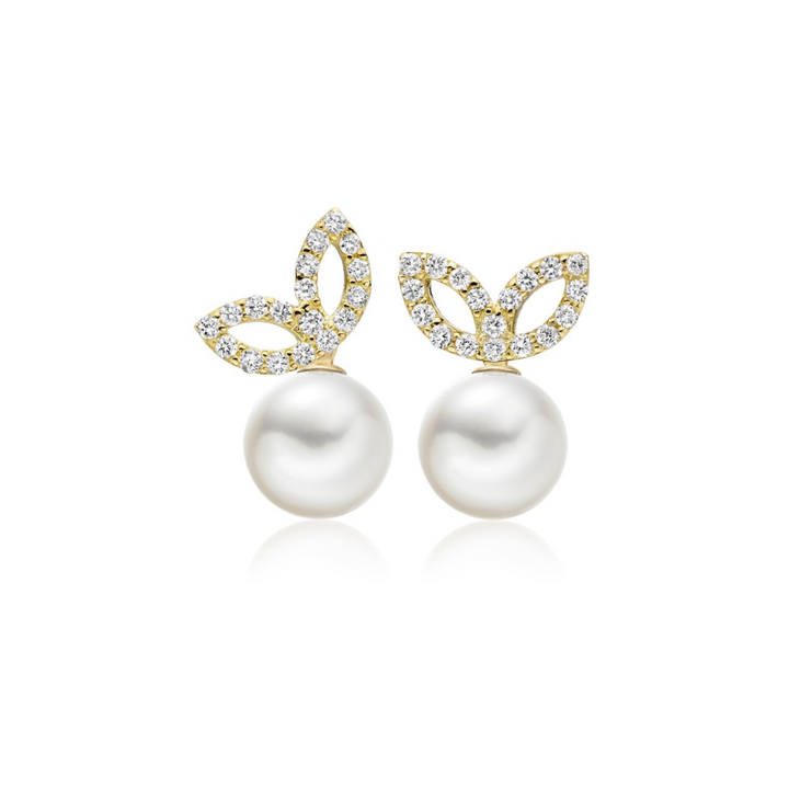 The Leaf Stud Earring with Round Pearl Drop features an elegant, nature-inspired design with a delicate leaf stud and a round freshwater pearl drop. Crafted in 14K yellow gold, it offers a refined and timeless look, perfect for adding a graceful touch to both casual and formal outfits. This piece beautifully blends the natural beauty of the pearl with the elegance of the leaf motif.
