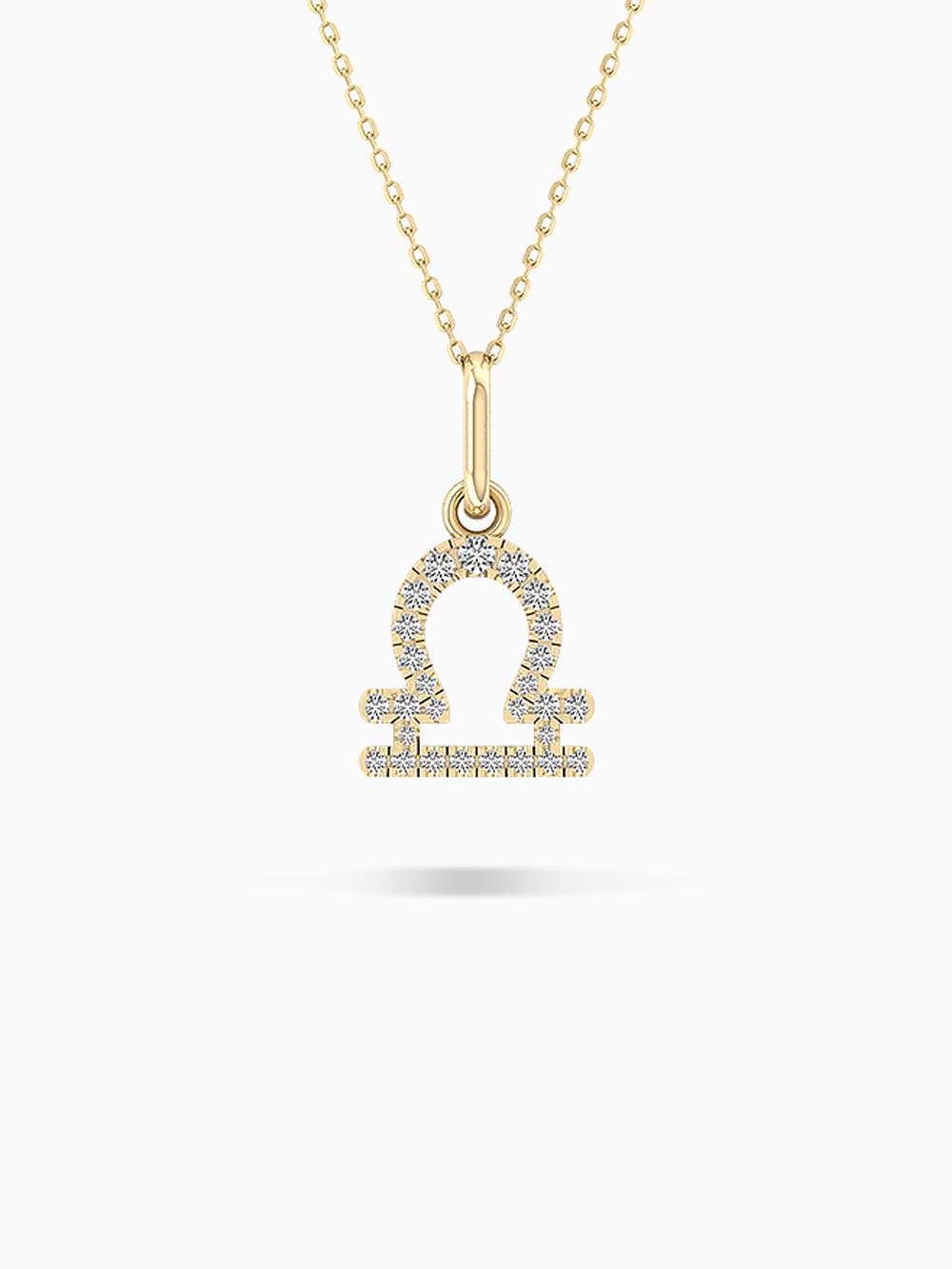 Embody the essence of balance and grace with this beautifully crafted pendant, designed in radiant 14K gold and inspired by the Libra zodiac sign. The design features the iconic scales, symbolizing harmony, fairness, and equilibrium, delicately adorned with ethically sourced diamonds that sparkle with exceptional clarity and brilliance.