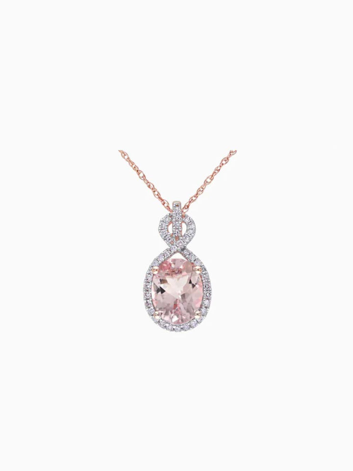 Embrace the soft allure of romance with this Morganite Cocktail Pendant, crafted in warm 14K rose gold to radiate a gentle, captivating glow. The centerpiece is a stunning oval-cut morganite gemstone, renowned for its delicate blush-pink hue that evokes feelings of love, compassion, and elegance.