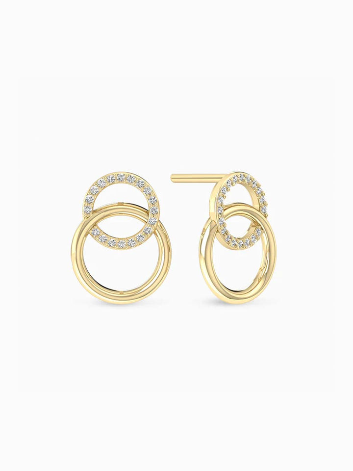 A graceful fusion of geometry and symbolism, the Linked Luminescence Diamond Earrings are crafted from 14k solid gold and adorned with natural diamonds that capture purity, light, and eternal connection. Featuring two interlinked open circles—one polished, one meticulously pave-set with diamonds—these earrings are more than adornment; they’re a statement of unity and infinite elegance.