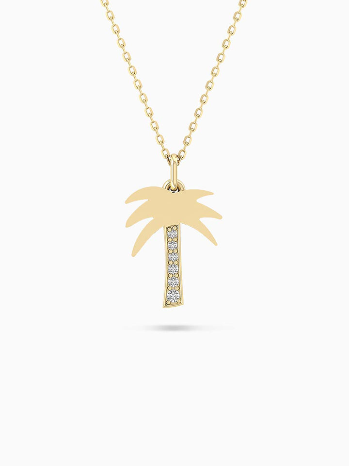 Capture the essence of sun-kissed shores and endless summer days with this beautifully crafted pendant, fashioned in radiant 14K gold. The design showcases a graceful tropical palm tree, its slender trunk and gently fanning fronds exquisitely detailed to evoke the serene beauty of paradise.