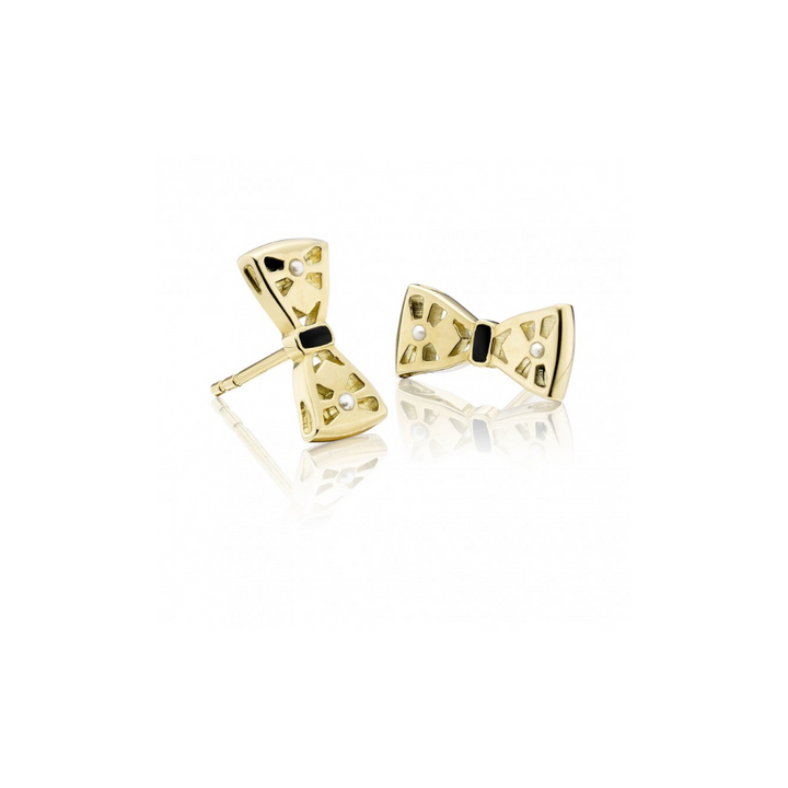 The Pearl in Bow Shape Studs made in 14K yellow gold offer a delicate and stylish design, featuring a bow-shaped motif with a central freshwater pearl. This charming piece combines playful elegance with sophistication, making it an ideal accessory for both casual and formal events. The 14K yellow gold setting enhances the overall elegance, creating a timeless piece of jewelry.