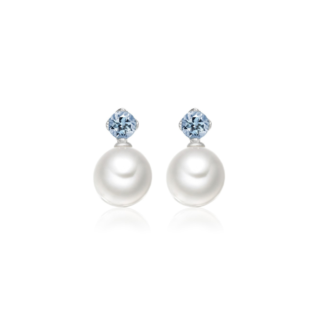 The Pearl with Topaz Drop Earring in 14K white gold elegantly combines the lustrous beauty of a freshwater pearl with the vibrant hue of a blue . Featuring a drop design, this sophisticated piece is perfect for adding a refined touch to any ensemble, whether casual or formal. The timeless charm of the pearls paired with the striking sapphire creates a versatile and stylish accessory.