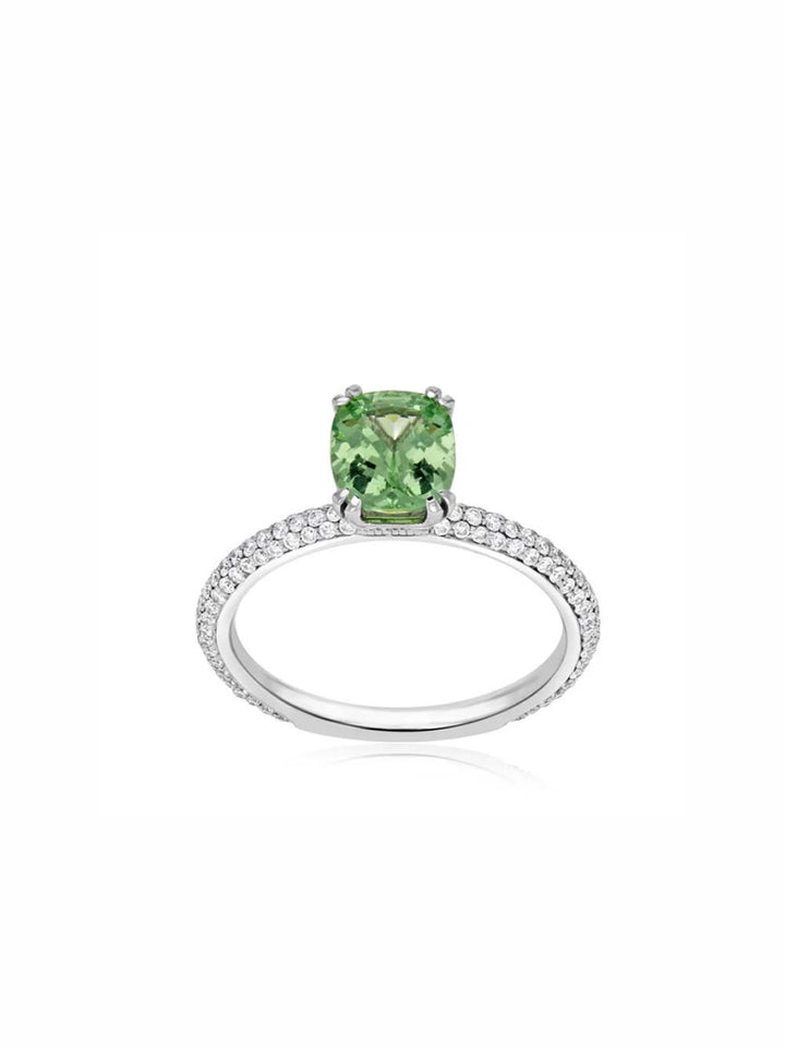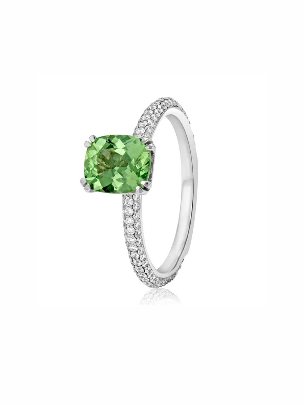 Radiating fresh elegance and vibrant charm, the Peridot Diamond Ring is a stunning celebration of nature’s beauty captured in exquisite craftsmanship. At its center glows a brilliant peridot gemstone, known for its lively lime-green hue that symbolizes growth, renewal, and positive energy. The peridot’s faceted cut enhances its natural sparkle, inviting light to dance through its vivid depths. Encircling or accenting the peridot are delicately pavé-set diamonds, chosen for their exceptional G-H color and VS clarity. These diamonds add a shimmering contrast, intensifying the gemstone’s bright green tones and lending the ring a refined sparkle that catches every eye. Crafted in polished 14k white or yellow gold, the band’s sleek design balances modern sophistication with timeless grace. Its smooth finish ensures comfort for daily wear, while the harmonious blend of peridot and diamonds makes this ring a versatile piece for both special occasions and everyday elegance. Whether gifted as a meaningful token or chosen as a unique addition to a jewelry collection, the Peridot Diamond Ring embodies renewal, joy, and enduring beauty—a cherished treasure destined to inspire and delight.