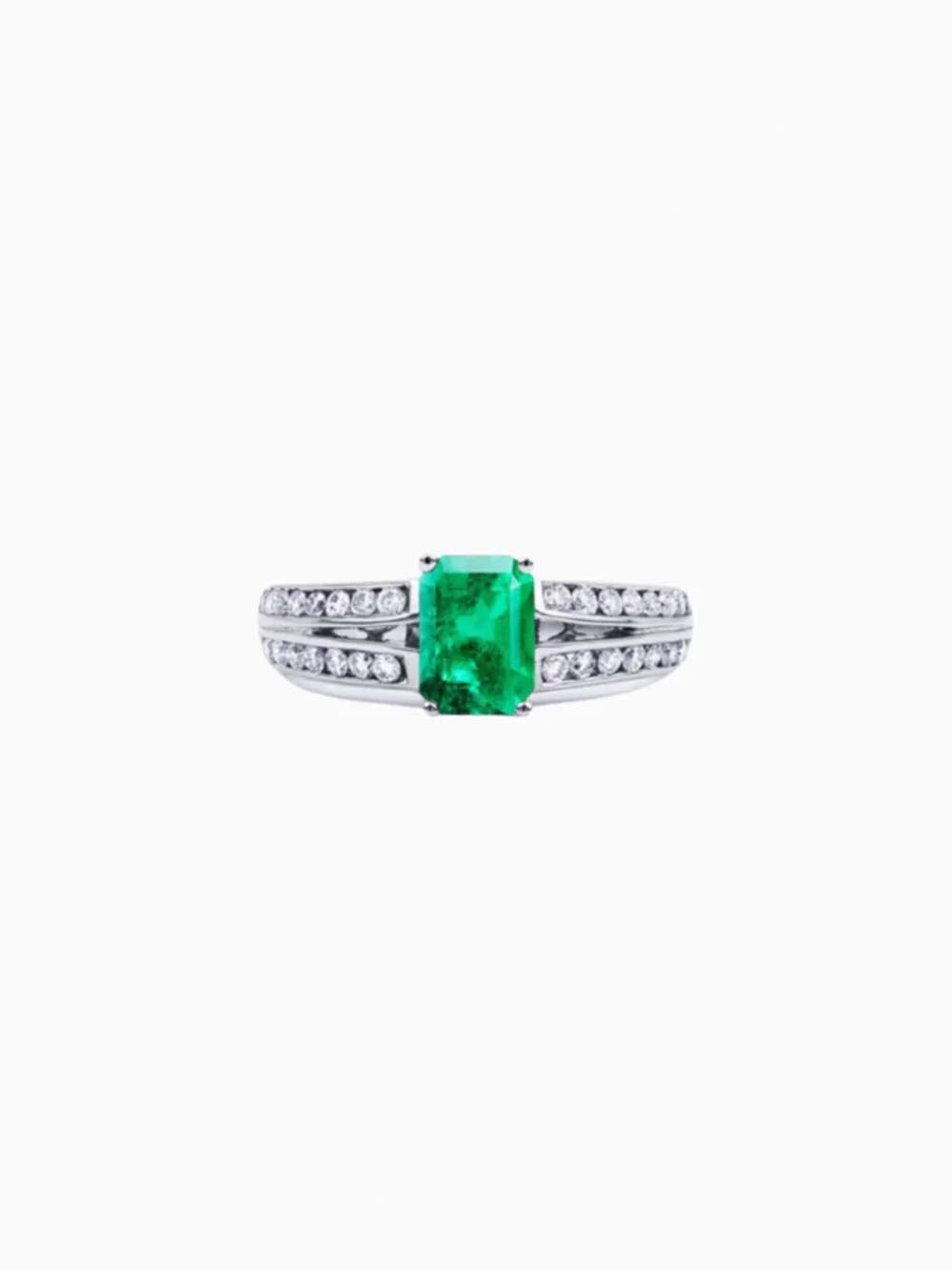 Perfect for those seeking a statement piece with both contemporary style and classic grace, the Rectangular Emerald and Diamond Ring is a refined symbol of passion, sophistication, and exquisite craftsmanship—a treasured jewel to be cherished for a lifetime.