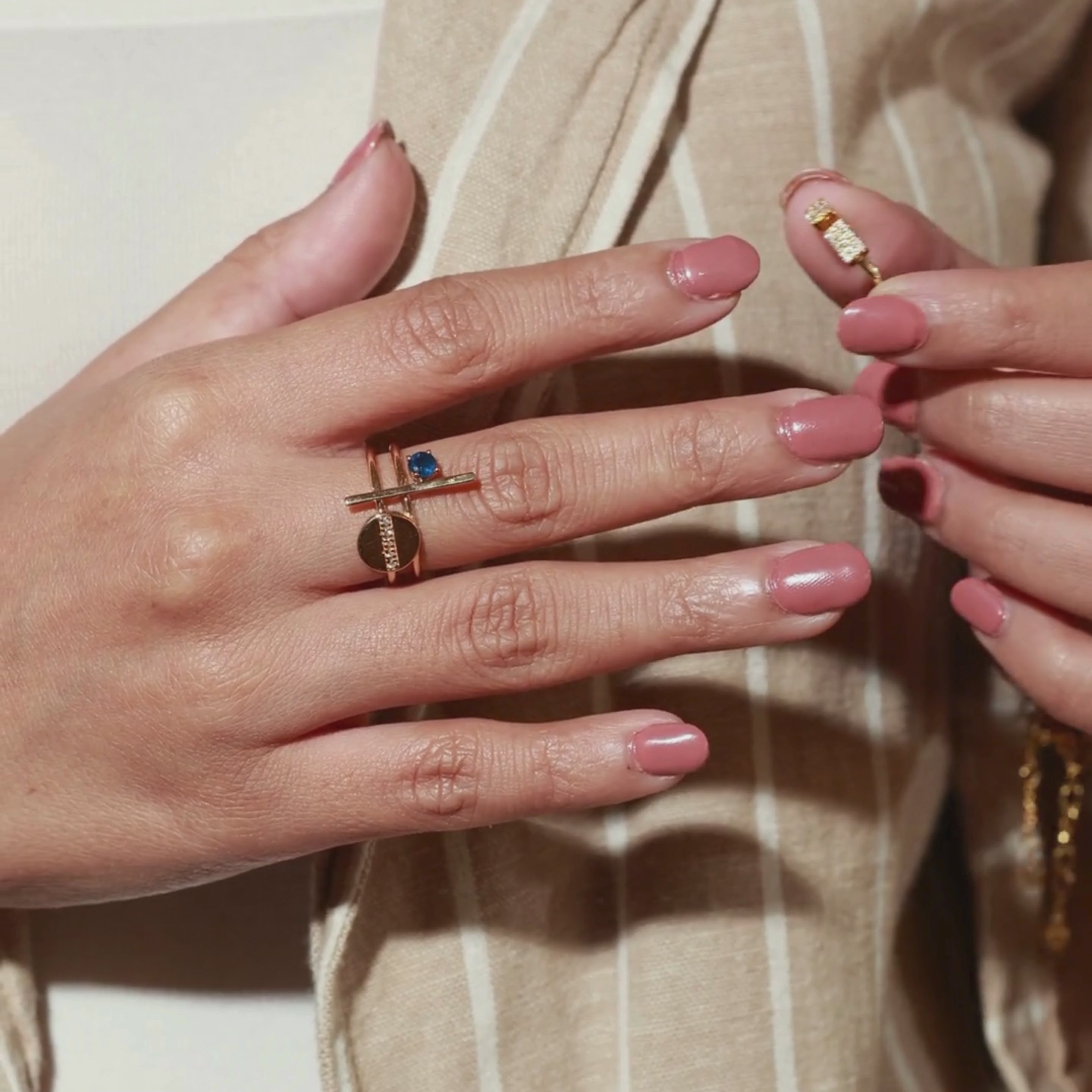 The open structure lends a sense of lightness and fluidity, while the polished gold band ensures a comfortable fit, perfect for both everyday wear and special occasions. Its versatile design allows it to be worn alone as a bold statement piece or stacked with other rings for a customized, layered look.