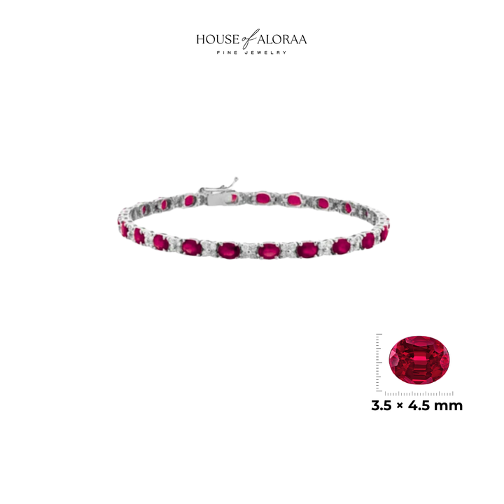 Diamonds of G-H color and VS clarity add shimmer and light to the bracelet, highlighting the rubies' rich tones. The design reflects both strength and sophistication, with a timeless silhouette that suits both traditional and modern styles.