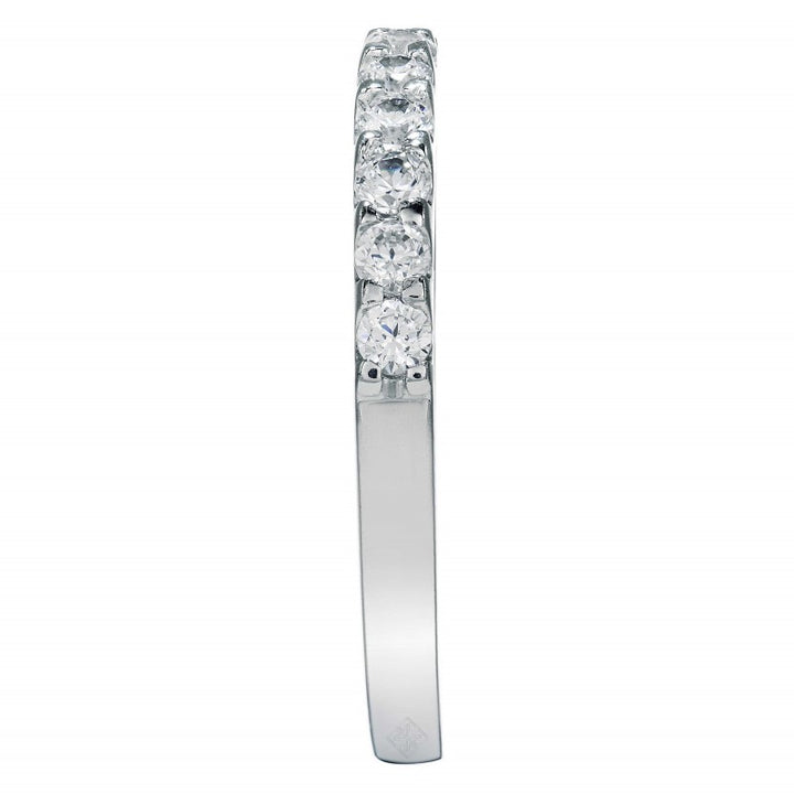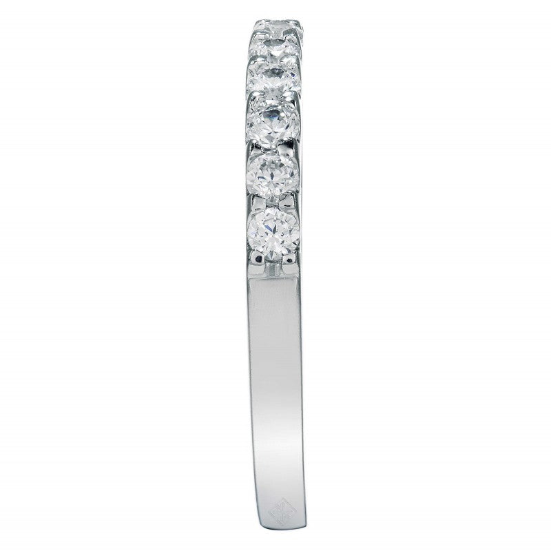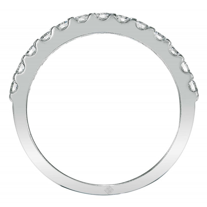 The single row setting allows the diamonds to take center stage, creating a graceful ribbon of light that gently wraps around the finger. Its sleek and slender profile offers both comfort and sophistication, making it an ideal choice for stacking with other rings or wearing solo as a minimalist statement.