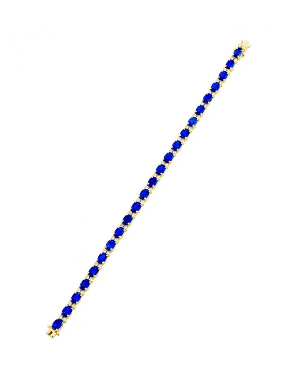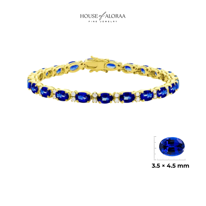 Uniting two of nature’s finest treasures, the Blue Sapphire and Diamond Bracelet presents a stunning combination of royal blue sapphires and sparkling diamonds. Each sapphire—sourced from Sri Lanka—radiates with a deep, velvety hue and is interspersed with brilliant-cut diamonds selected for their G-H color and VS clarity.
