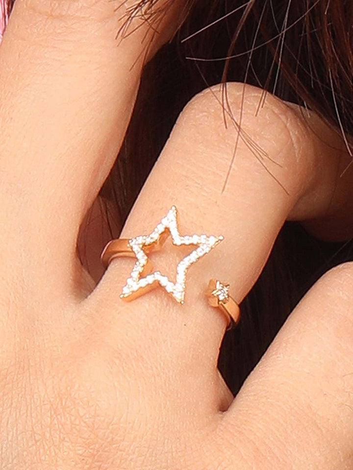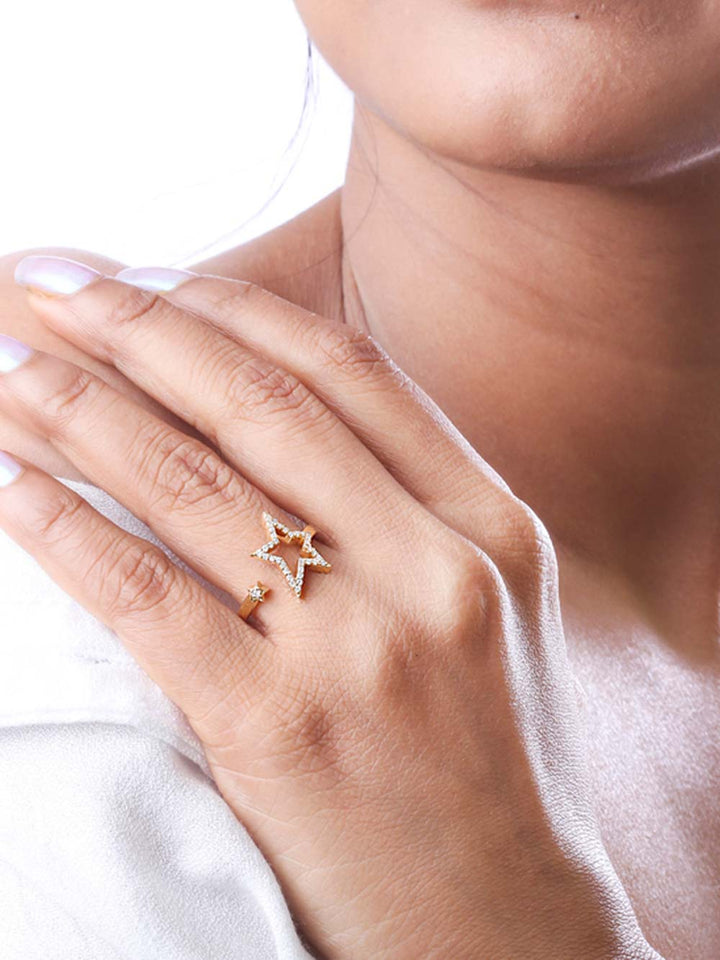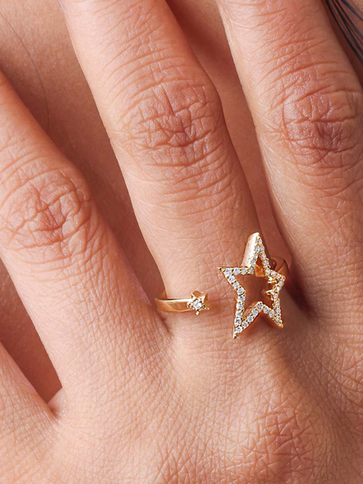 Versatile enough to stand alone as a bold statement or paired with slender stacking bands for a curated look, the Star Diamond Open Ring is more than jewelry—it is a wearable constellation, inviting the wearer to carry a fragment of the heavens close at hand.