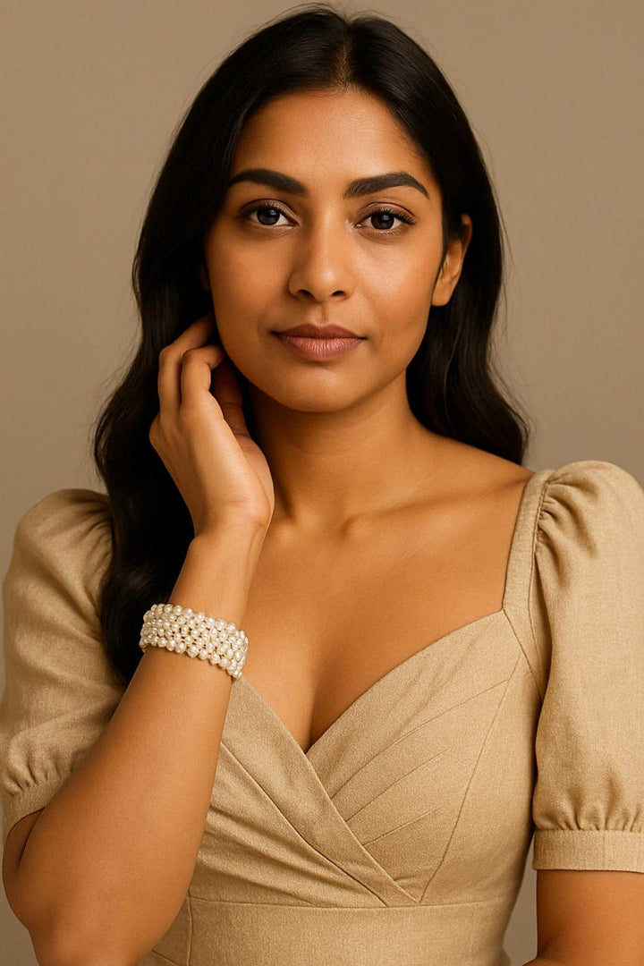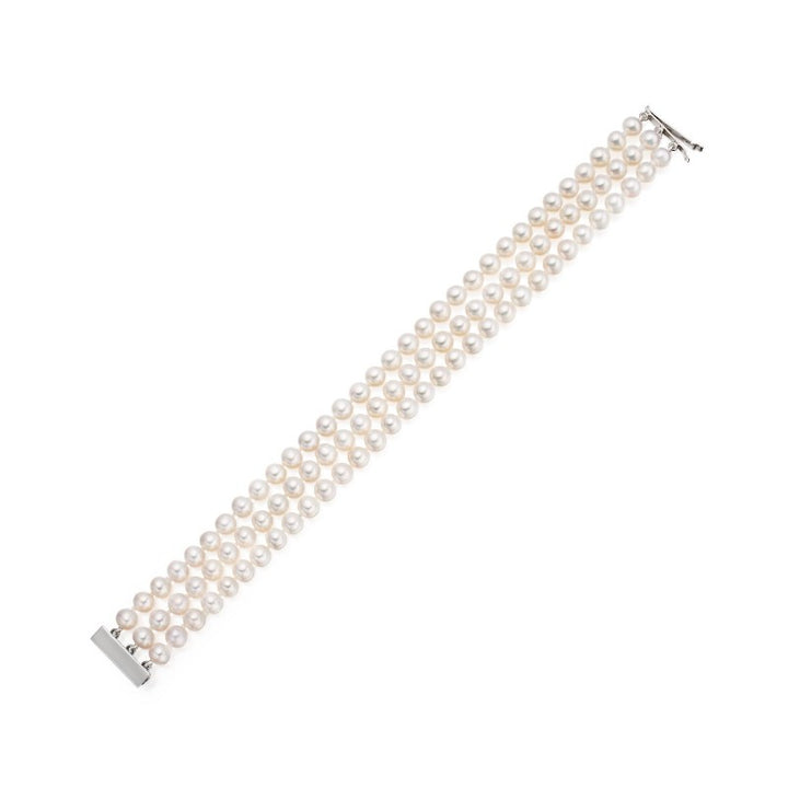 The Triple Line Freshwater Pearl Bracelet combines elegance and sophistication with its lustrous freshwater pearls. Set in a sleek, minimalist design, the bracelet features three strands of pearls, each individually strung for a dynamic, flowing appearance. Crafted with 14K white gold and yellow gold, it offers a refined and luxurious touch. Ideal for any occasion, this piece exudes timeless beauty, making it a perfect gift or a personal indulgence.